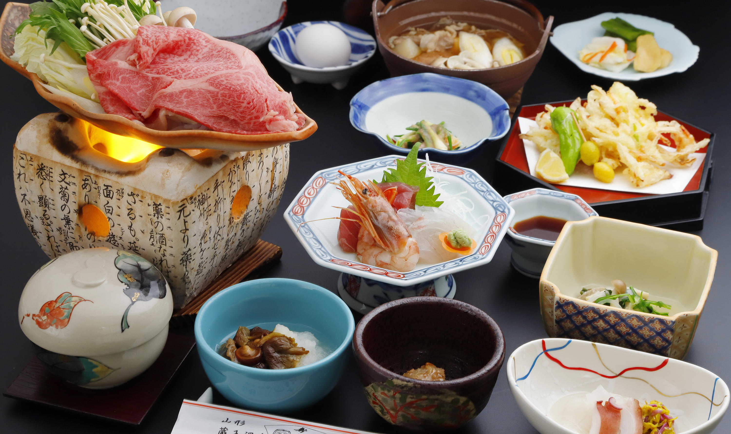 地元山形牛、蔵王の山々で収穫した山菜やきのこなど、郷土色豊かな旬の味覚をお召し上がり下さい。